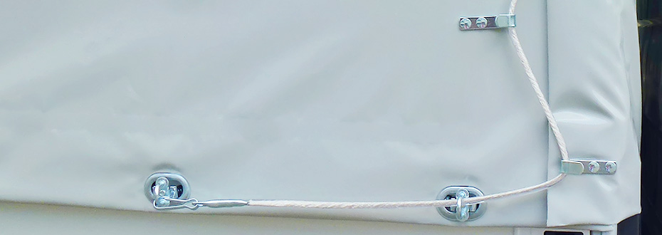 - Zickzackverschluss mit Planenseil (oben/seitlich)