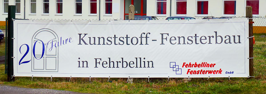 Die Werbebanner sind aus leichtem, wetterfestem PVC-Gewebe rundum gesäumt und geöst.